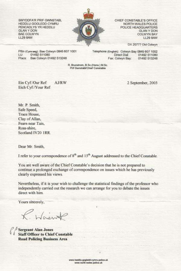 received a letter dated 2nd September 2003 from Sergeant Alan Jones.