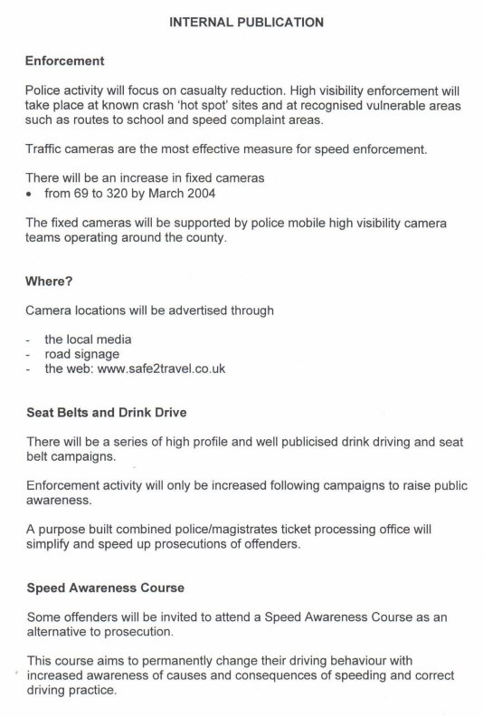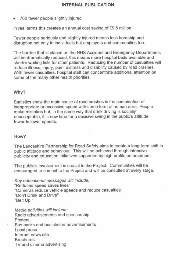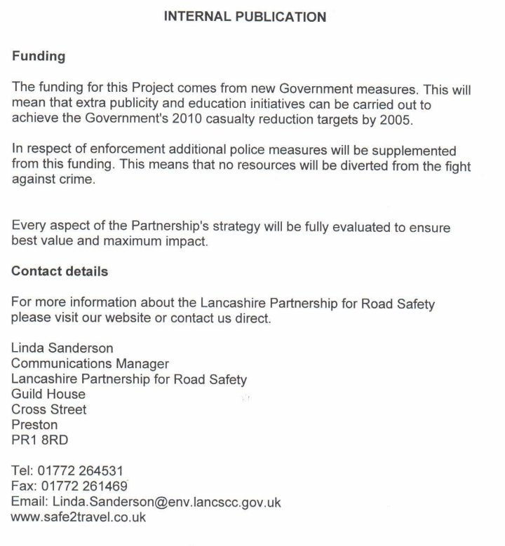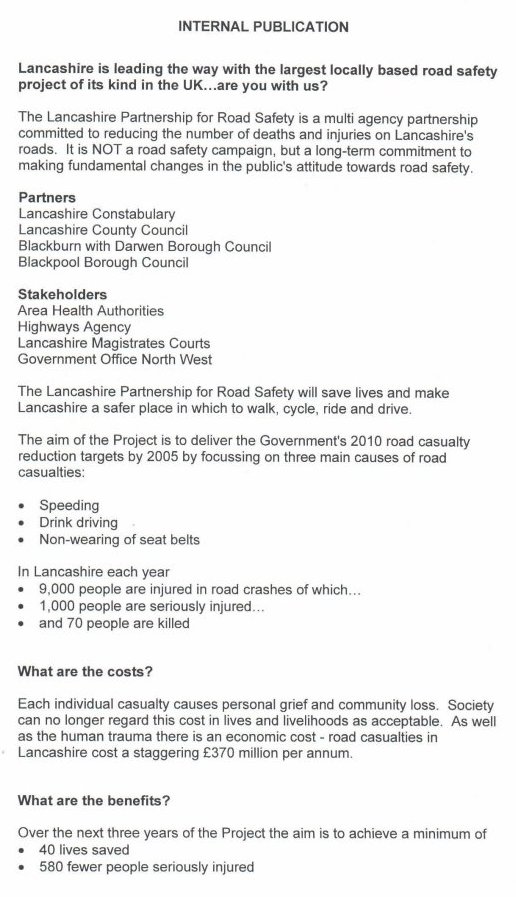 We've been lucky enough to have been sent a leak of an internal document describing the planned behaviour of the "Lancashire Partnership for Road Safety". It's reproduced here in full.