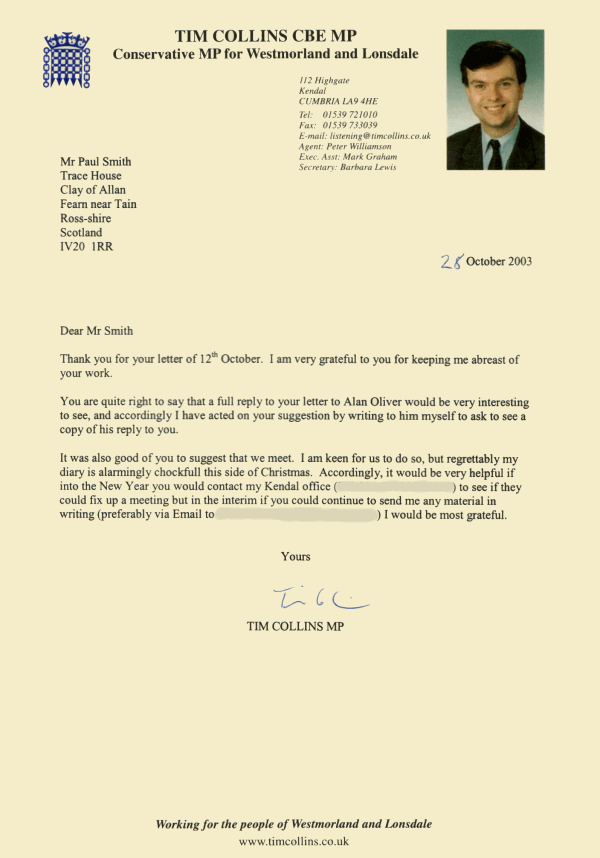 I had emailed him, complaining about the lack of a reply to an earlier letter and emails... Subject: Re: Non reply