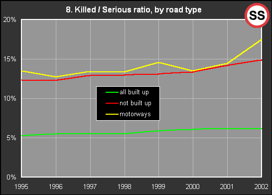 This graph shows rising trends in the killed / serious injury ratio for all road types |