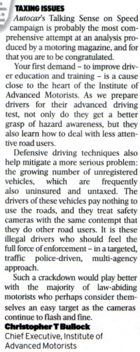 The Talking Sense on Speed campaign launched 20th October 2003. It is jointly conducted between Autocar Magazine and the RAC Foundation. |