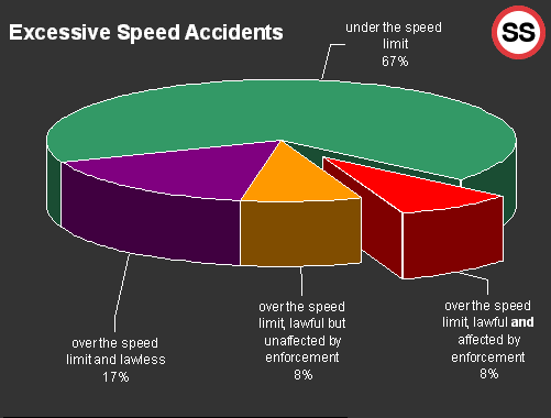 The Secondary One Third Lie Examples We're expected to believe that "one third" of accidents will be affected by enforcement. Source Not known - it's an ongoing implication. Truth The vast majority of excessive speed accidents are entirely out of reach of speed enforcement. There are three important ways that the accidents are out of reach. Firstly, a large proportion of excessive speed accidents take place entirely within the speed limit. We've never seen UK figures for this proportion, but research in Canada put the proportion at 2/3rds. For want of UK based figures we'll assume that the same applies here for the purpose of estimation. (update: see Avon and Somerset figures - we found some!) Secondly, there are "lawless" drivers who are functioning outside of the law for one or more of the following reasons: