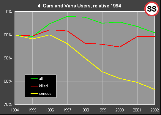 The strange behaviour of the serious injury figures is clear in this large road user group |