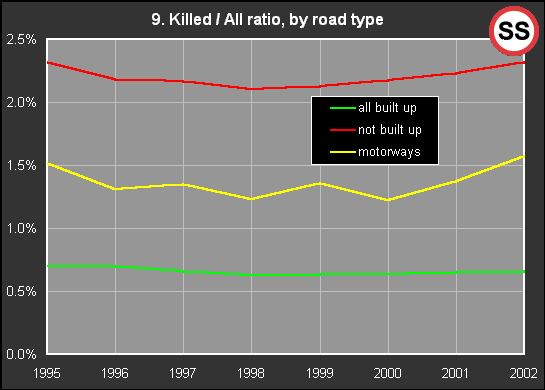 This graph shows rising trends in the killed / serious injury ratio for all road types |