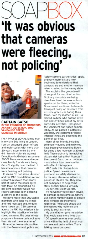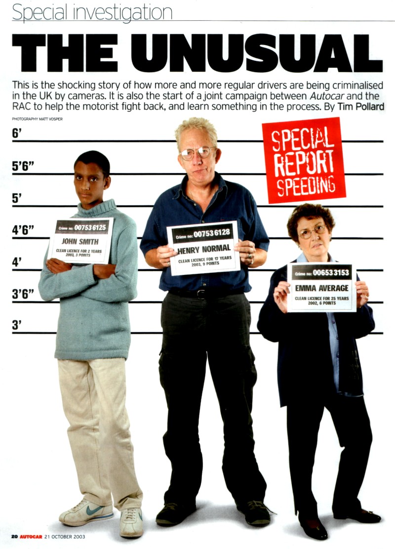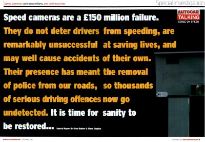 The Talking Sense on Speed campaign launched 20th October 2003. It is jointly conducted between Autocar Magazine and the RAC Foundation. |