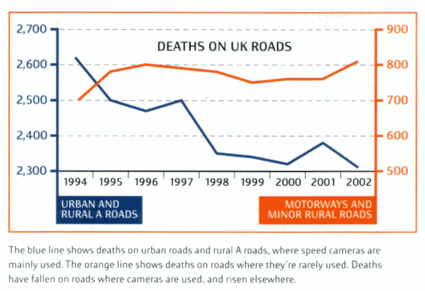 A key argument in the Which? article is that deaths are rising on roads where speed cameras are used infrequently. A graph is offered in support of the theory. But the information is all wrong. Note these points: